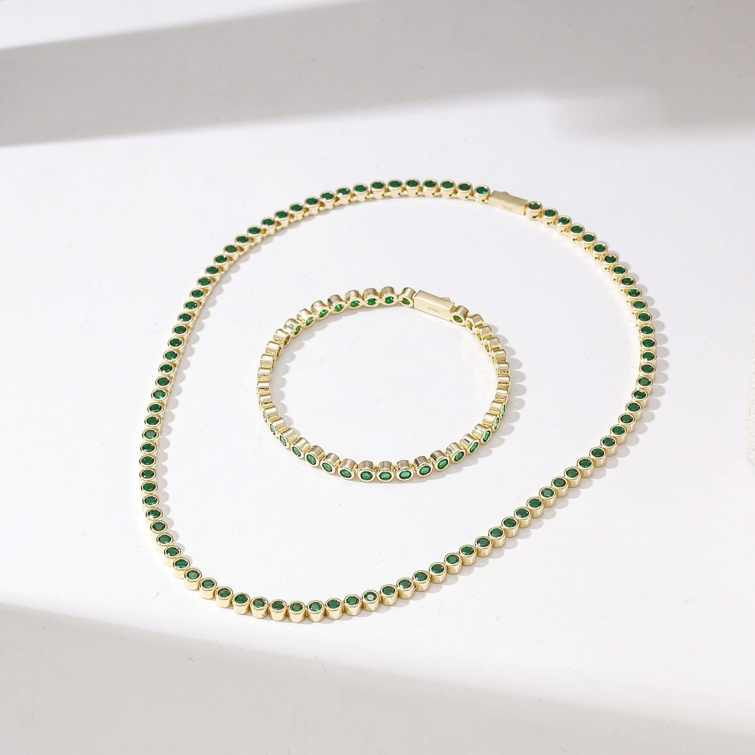 A modern take on a classic tennis necklace. The Bezzel Tennis necklace features sleek bezel-set gemstones linked in a smooth, continuous shine. Made with durable 316L stainless steel and real 18k gold finish, it’s designed for everyday wear without losing its glow.